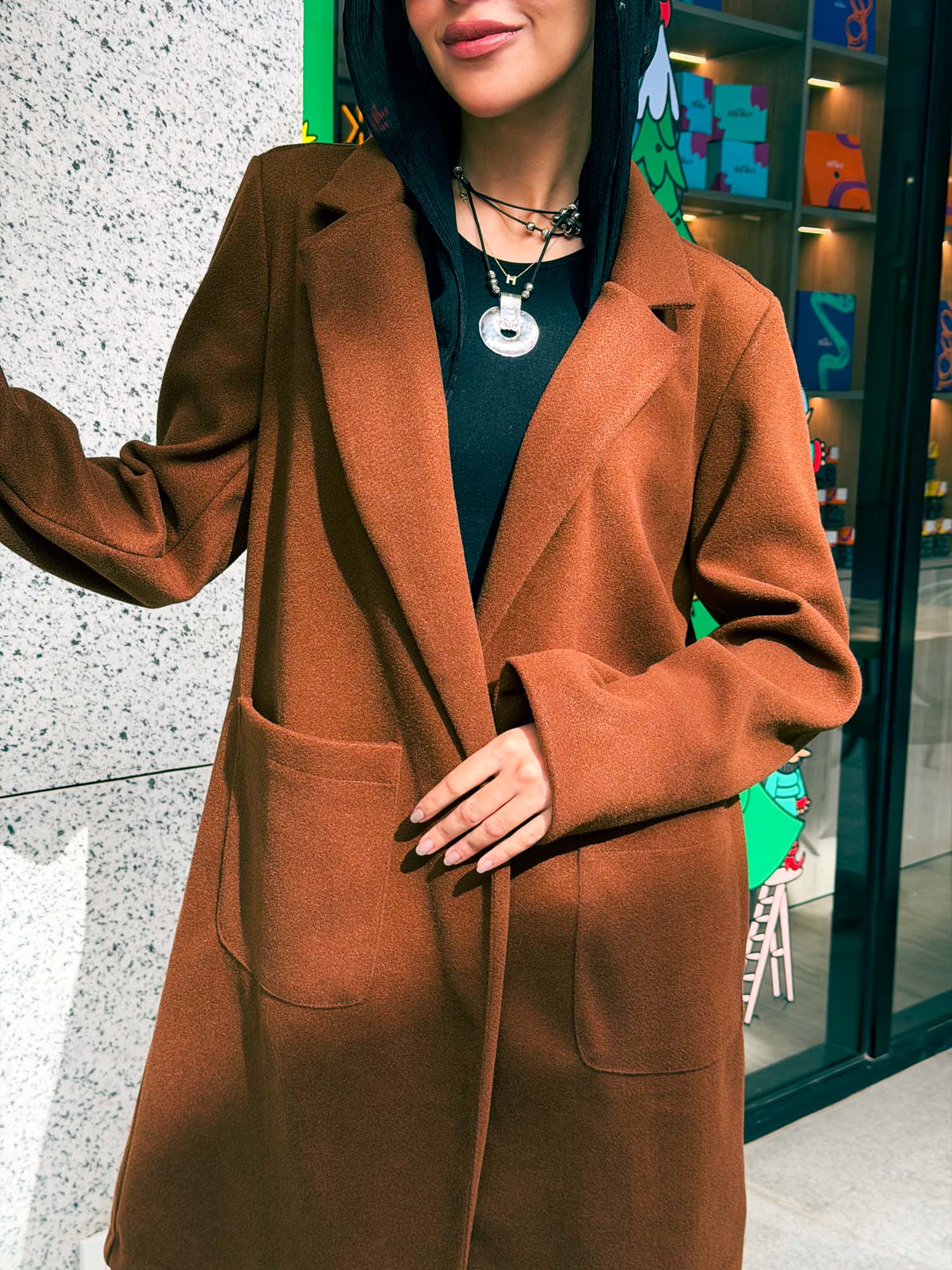 Long wool jacket with 2 pockets